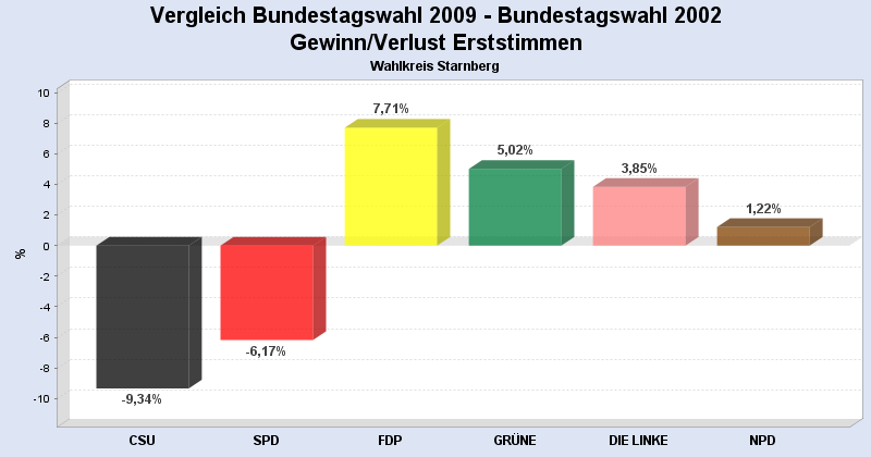 | Partei | Erststimmen 2009 | Prozent 2009 | Erststimmen 2002 | Prozent 2002 | |