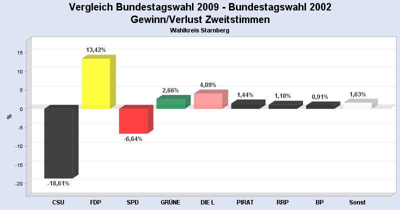 | Partei | Zweitstimmen 2009 | Prozent 2009 | Zweitstimmen 2002 | Prozent 2002 | |
